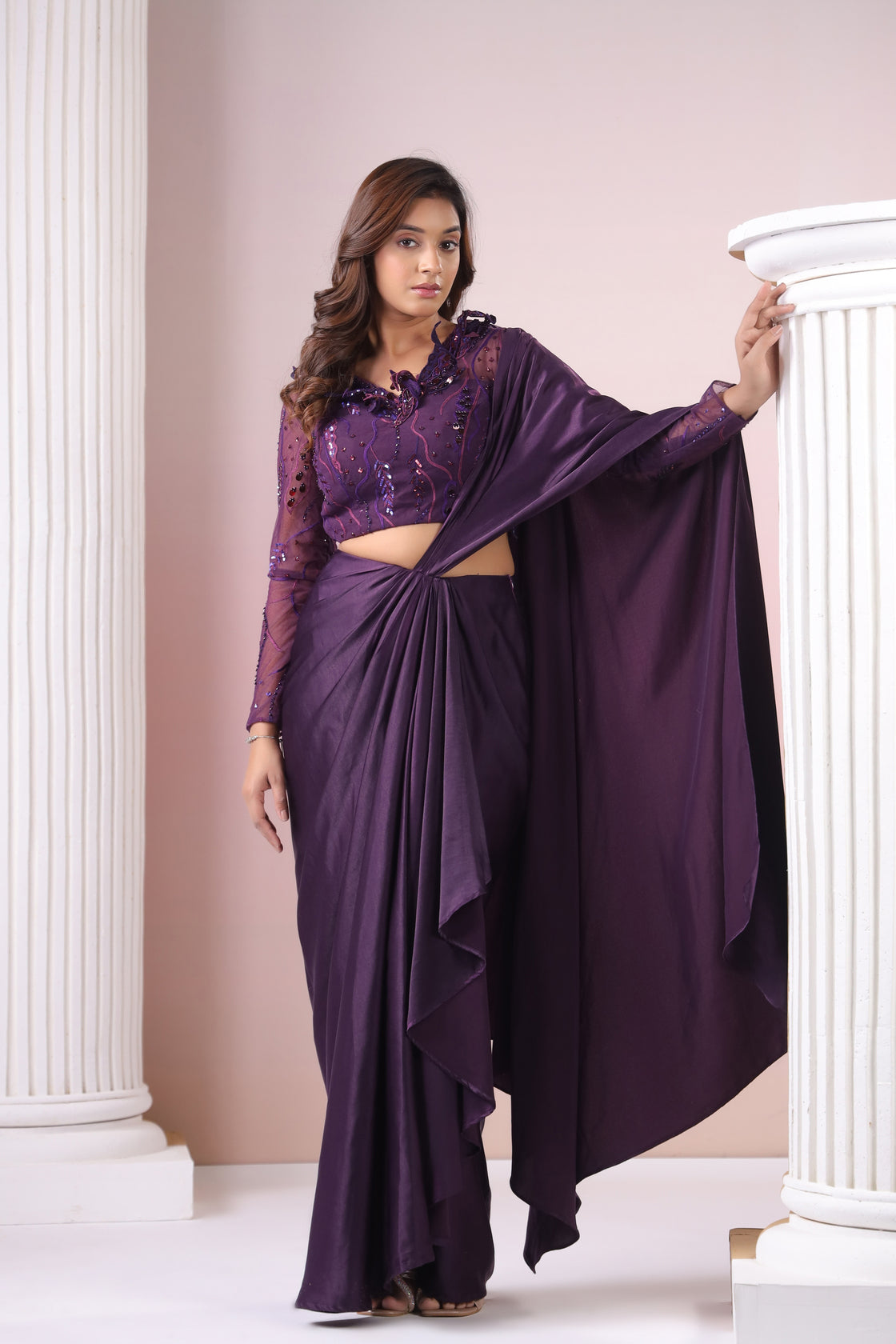 ROYAL BLUE CORSET CAPE SET WITH FISH CUT SKIRT.