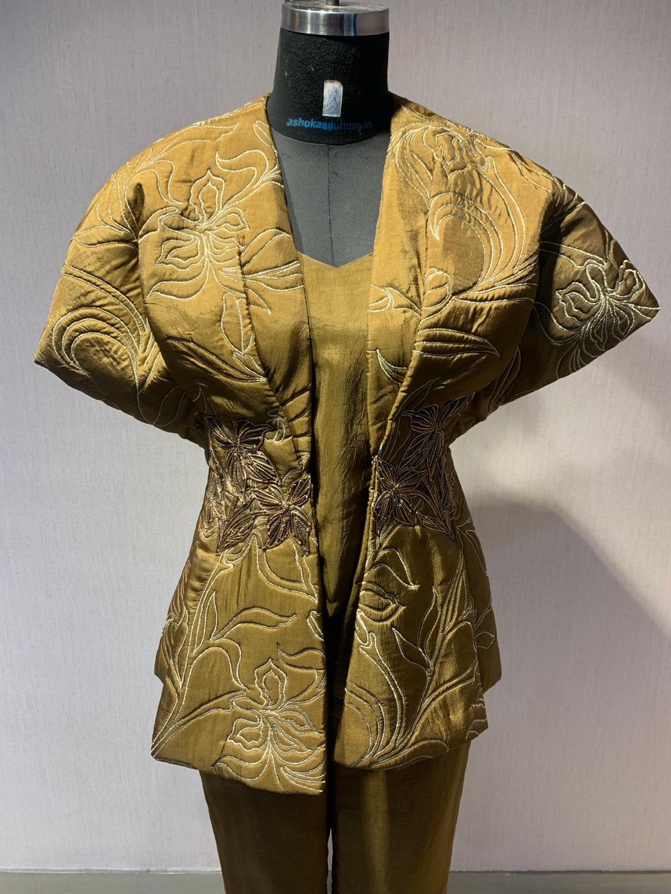 QUILTED EMBROIDERED JACKET WITH INNER & PANTS SET.