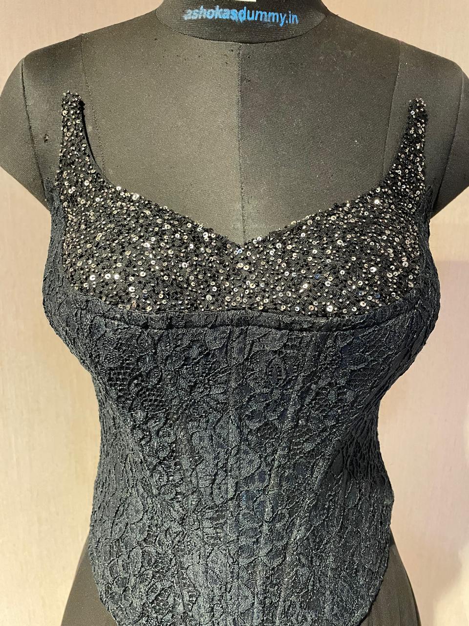 Inform when this item available BLACK CORSET CAPE SET WITH FISH CUT SKIRT.