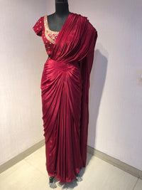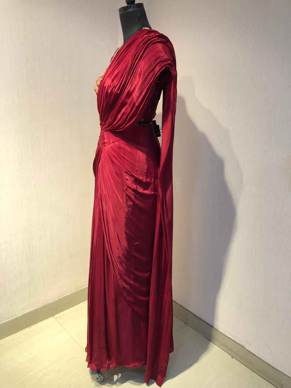 Inform when this item available RED DRAPE SAREE WITH EMBRIODERED BLOUSE.