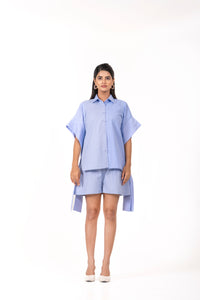 Inform when this item available SKY BLUE CO-ORD SET - RELAXED FIT SHIRT & SHORTS.