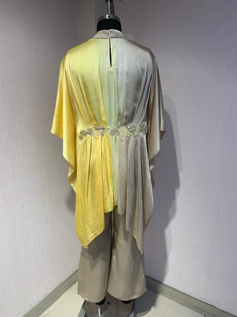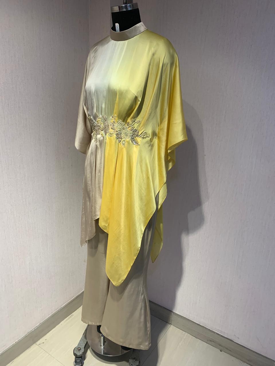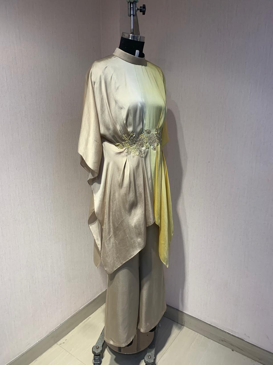 BEIGE MUSTARD CO RD SET WITH EMBROIDERY AROUND THE WAIST - MUSTARD / SMALL / Satin