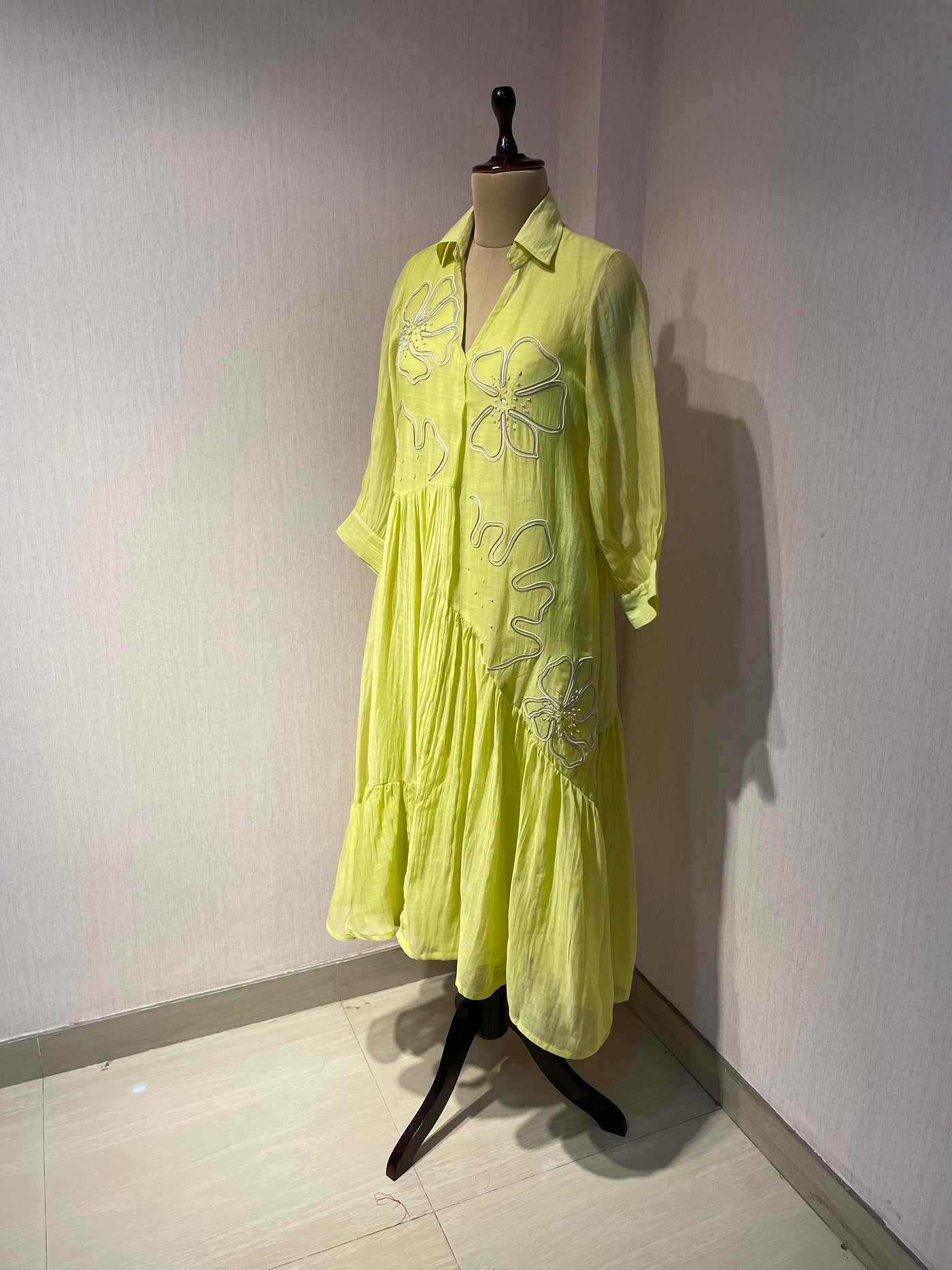 Inform when this item available ELEGANT GREEN FLARED DRESS FEATURING DELICATE FLORAL EMBROIDERY.
