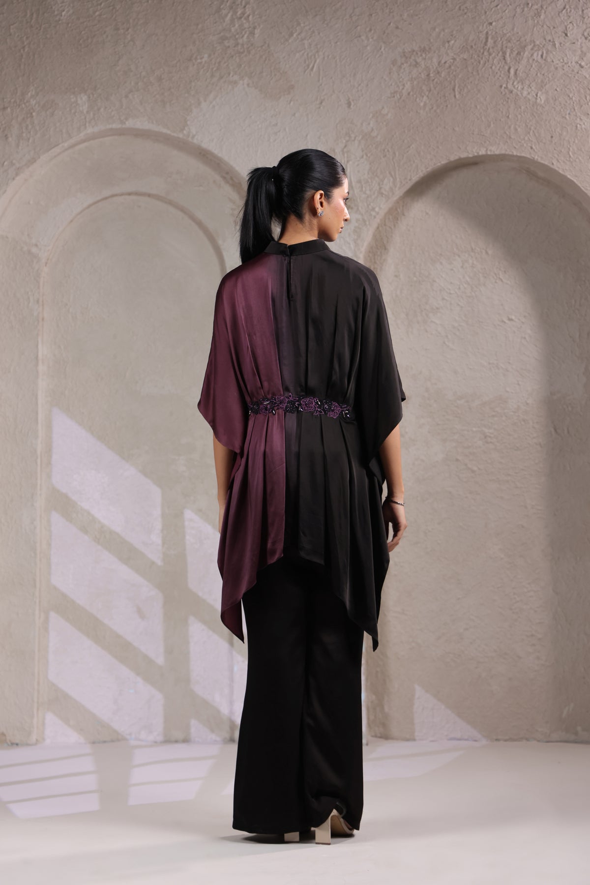 Inform when this item available ELEGANT BLACK & WINE DRAPED TUNIC SET.