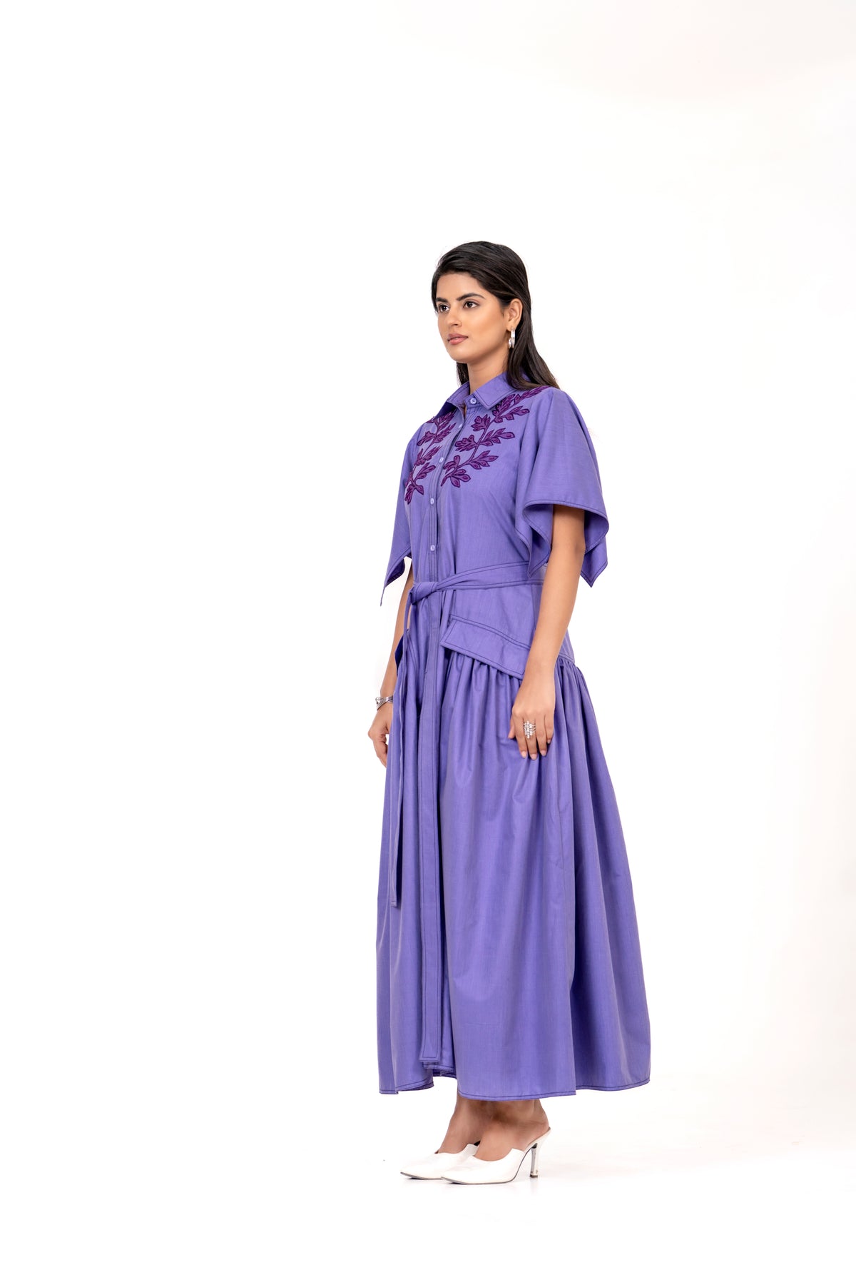 Inform when this item available PURPLE BLOOM EMBROIDERED MAXI DRESS WITH BELT